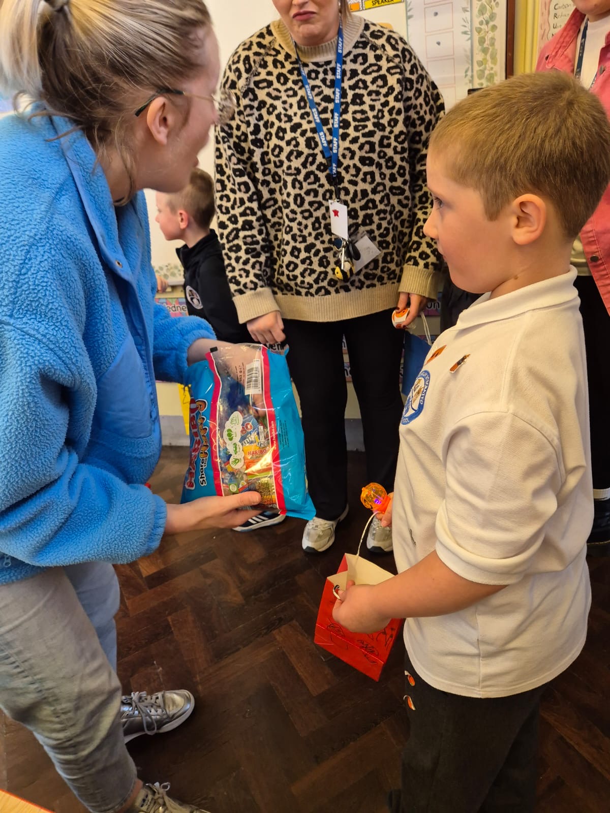 Each child from The Hive buddied up with a friend from The Nest, and together they went trick-or-treating, visiting different classrooms throughout the school. The children loved collecting their treats and showing off their creative bags.